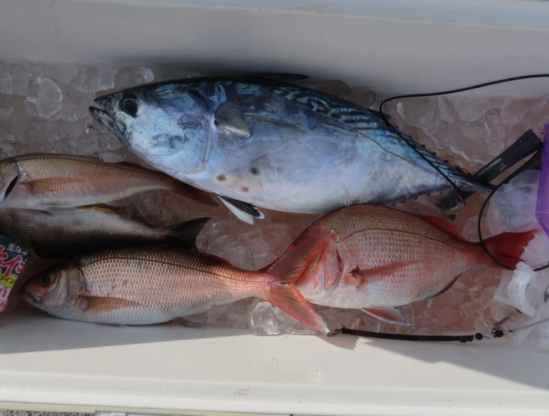 シマアジ、マダイ狙いで出船しました。 【ポイント】 石廊崎西沖 50〜60m 【 天 気 】 晴れ 【 水 温 】19℃ 【 水 色 】 普通 マダイ 0.6〜1.7kg 0〜1匹 ジャンボスマガツオ、イサキ […]