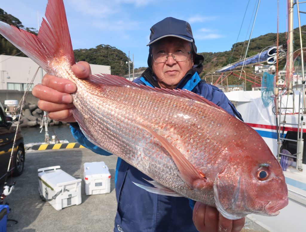 【コメント】今日は白浜沖へ。風があり釣りづらい状況てした。深いポイントを狙いやはりメダイのほうが多かったですが、良型のマダイも上がりました。メダイでお土産にはなり、0は1人で残念。
