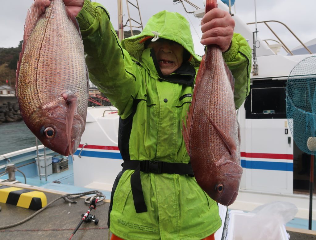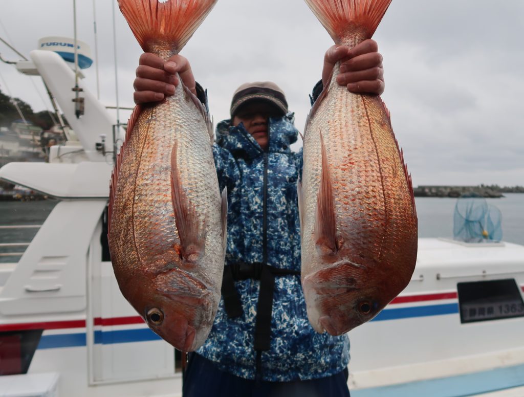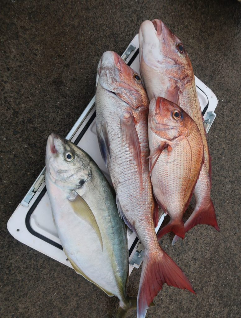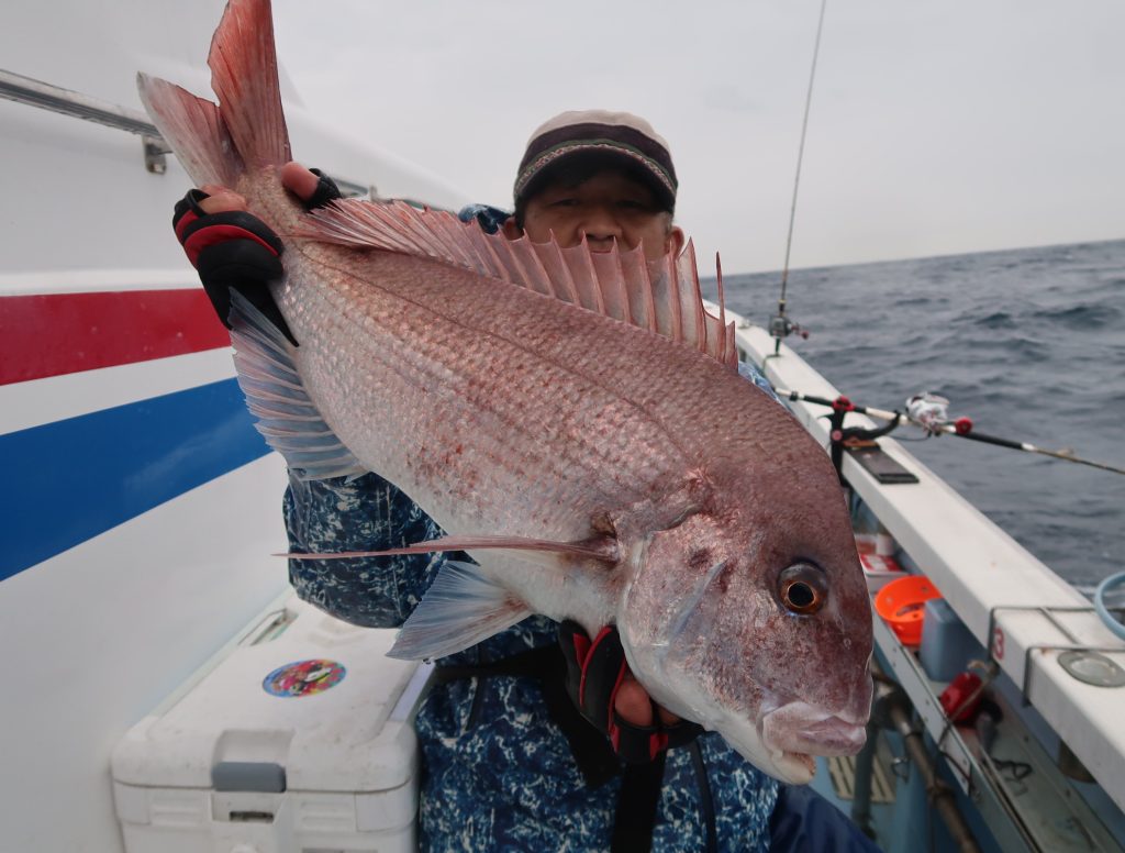 【コメント】今日は神子元島沖へ。マダイは良型主体、3.1の他に3.0kgも上がる。しかも高級外道シマアジも! バラシも多数、メダイの手元でのバラシも数回で残念。