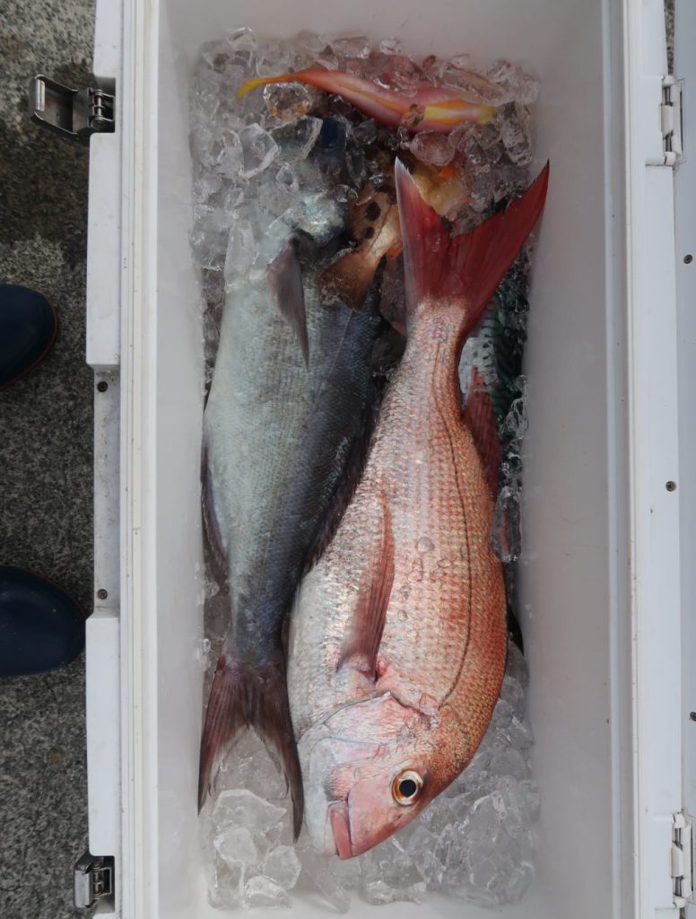 【コメント】今日は白浜沖へ。ともに食い渋りでしたが、マダイは良型がそろいました。