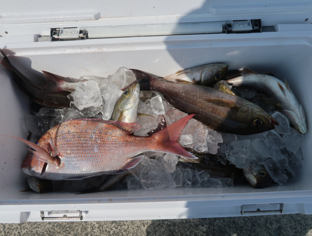 【コメント】今日は下田沖へ。マダイは小型ながら上がり、イサキも良型主体にポツポツでした。